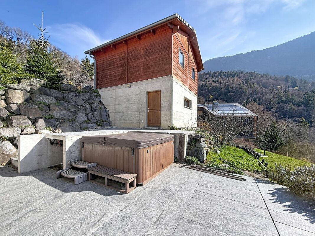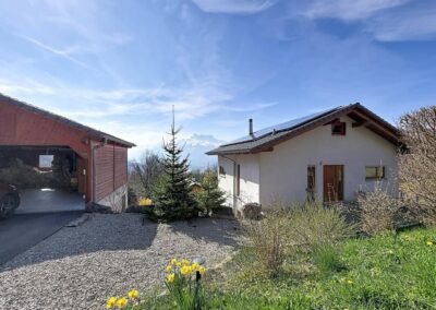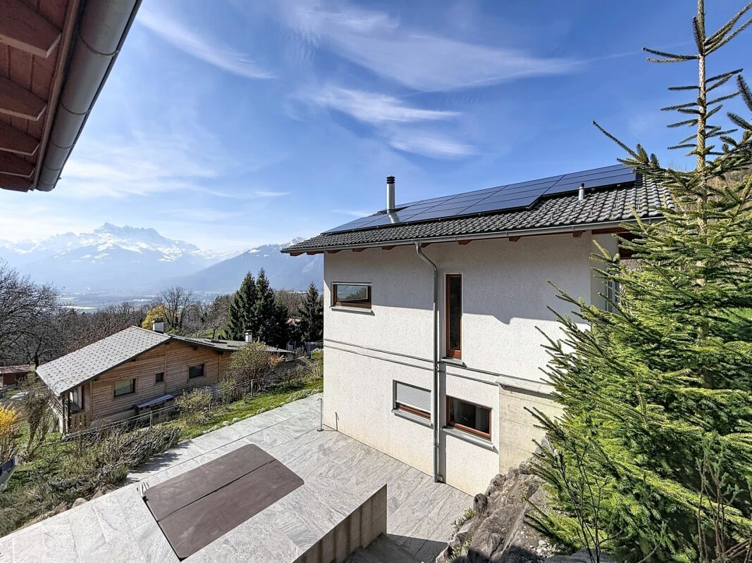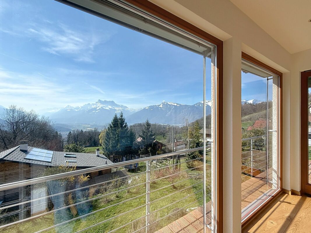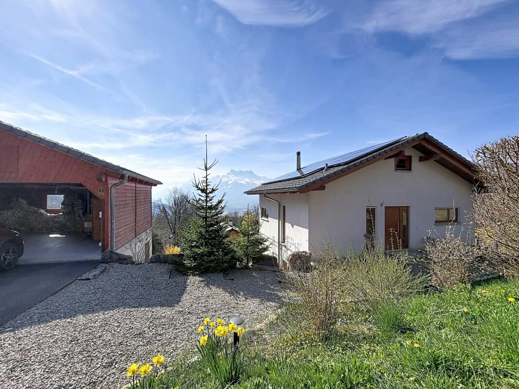 Perchée dans un cadre paisible et privilégié, cette maison d'architecte de 191 m² offre un panorama exceptionnel sur la plaine vaudoise et les Dents du Midi.