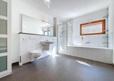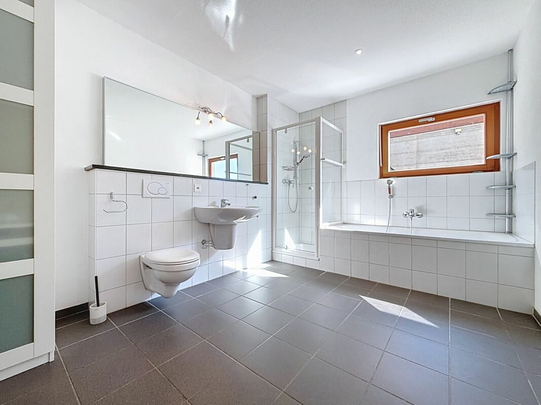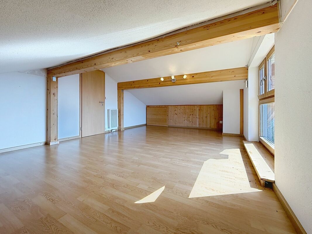 Nouvelle salle de bain à l'étage. Accès galetas + chambre avec vue panoramique par escalier en colimaçon.